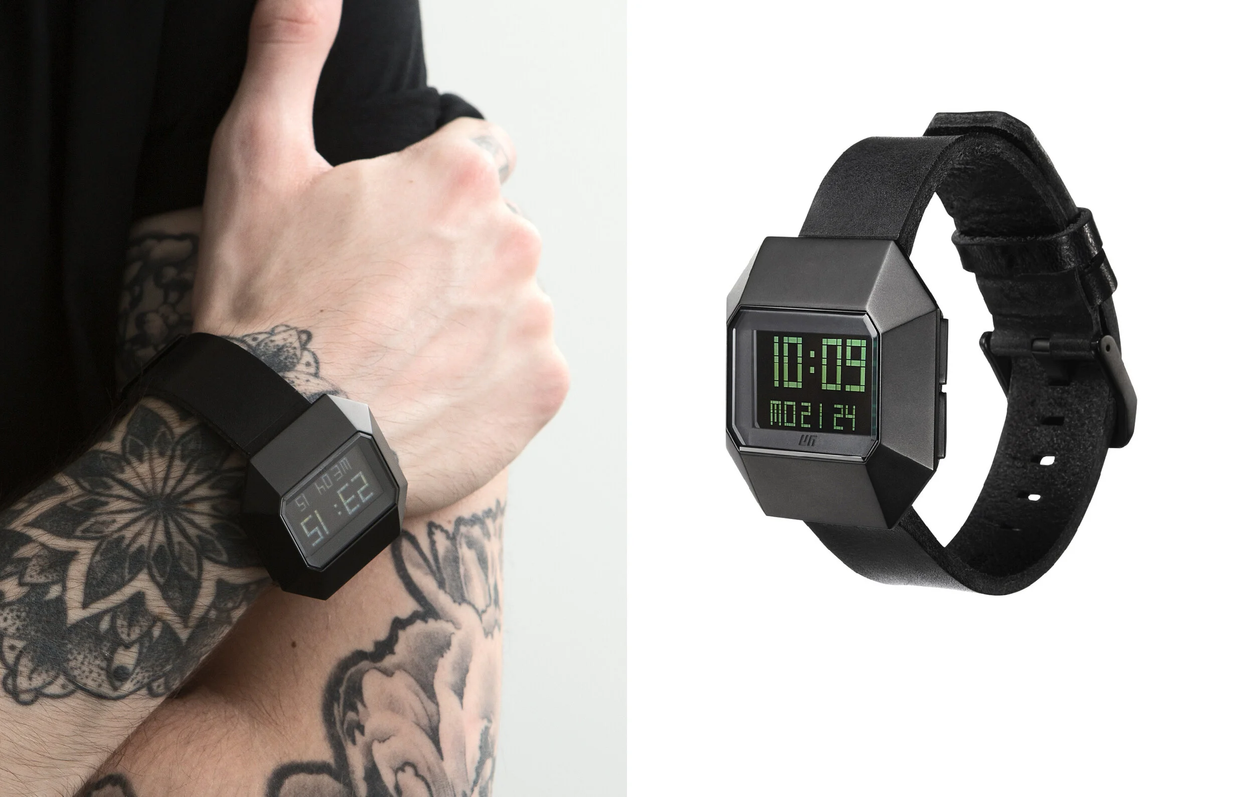 A digital module was developed specially for our case size. The display graphics for numbers and letters were also specially designed to match the minimal design aesthetic.