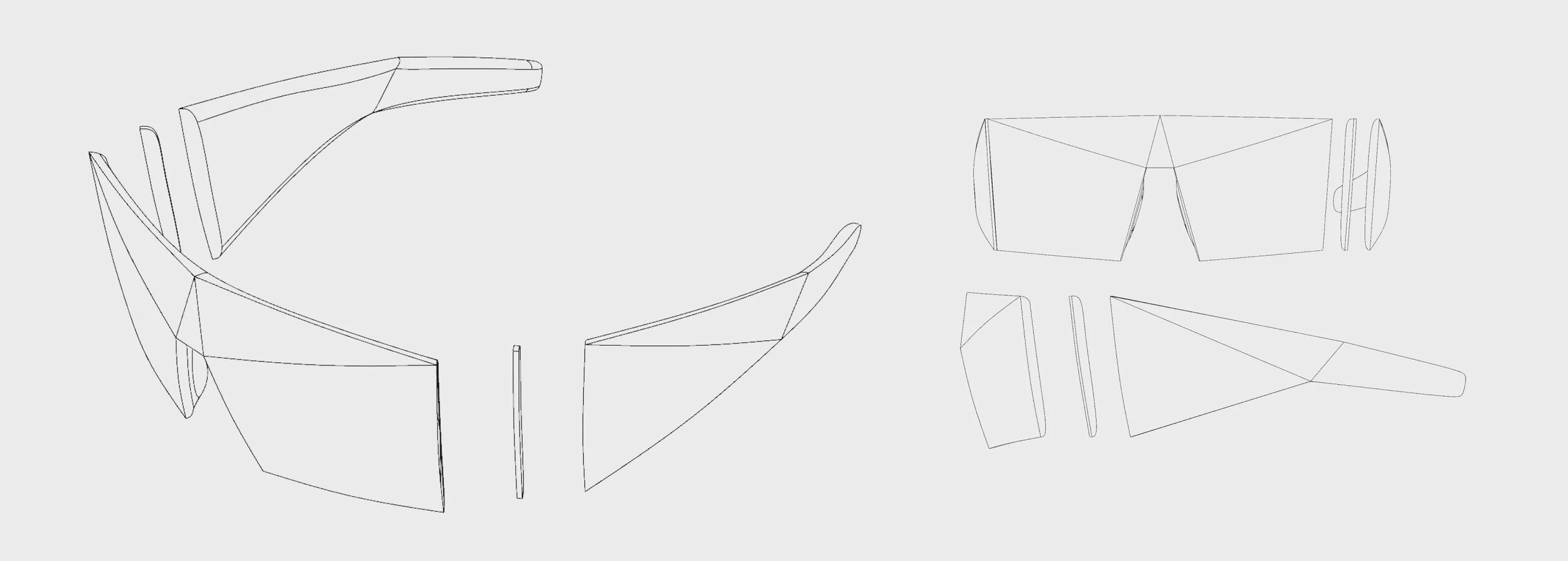 We made a CNC milled prototype to test the comfort and proportions. The material used was a block of clear acetate that was polished and tinted. The front shield came out as a singular sculpted piece with nosepads.