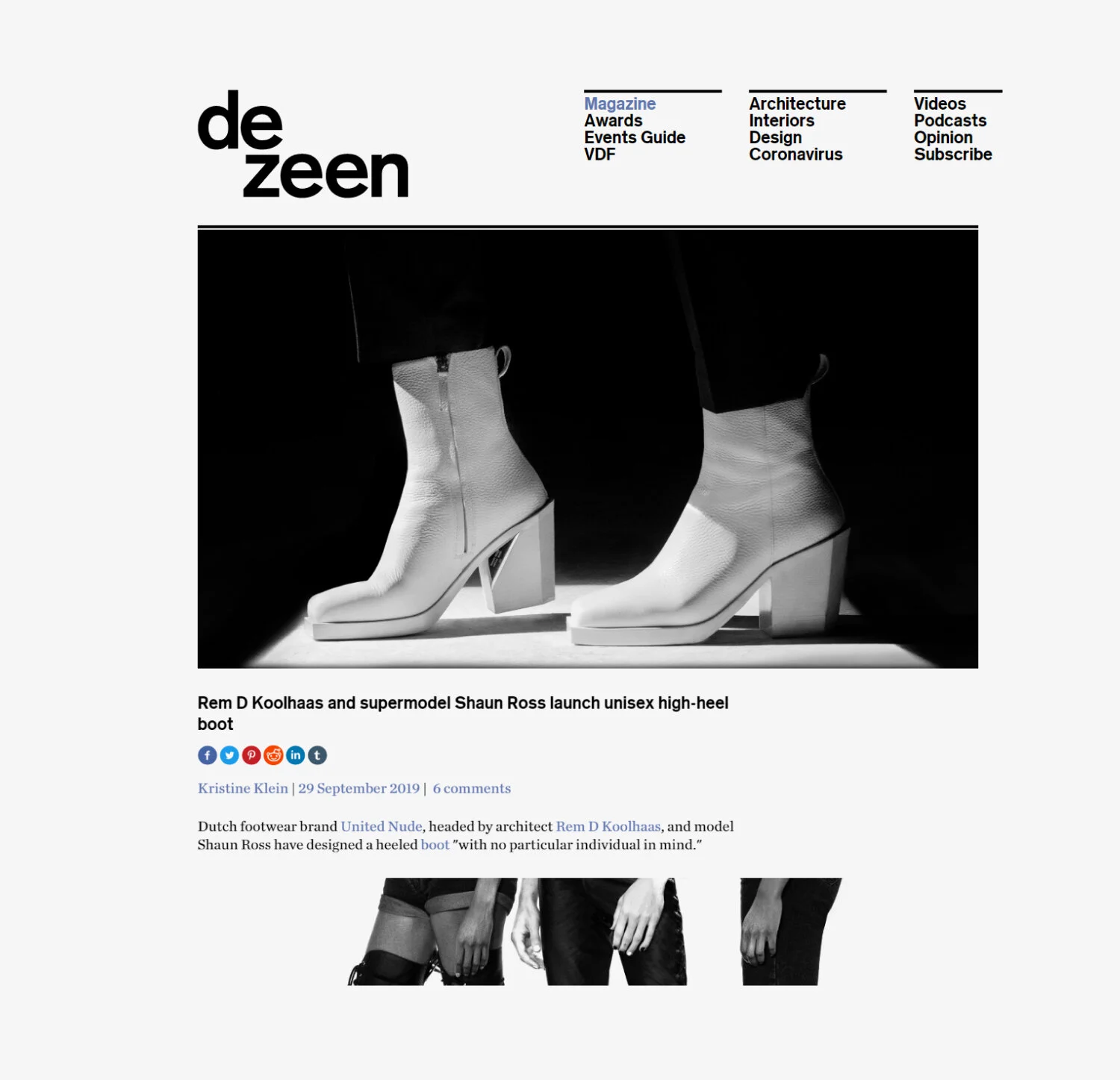 Collaboration between prolific American fashion model and aspiring musician Shaun Ross and United Nude. The overall idea: to androgenize the high heel boot. What’s hers is his.Concept